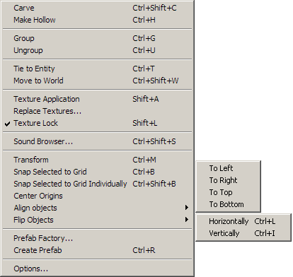 Cette option commute le mode Texture lock on et off. Texture lock permet de déplacer un polyèdre (brush) sans désaligner les textures sur l'objet. Si Texture lock est désactivé, lorsque vous bougez un objet, la texture reste alignée à la position d'origine de l'objet.