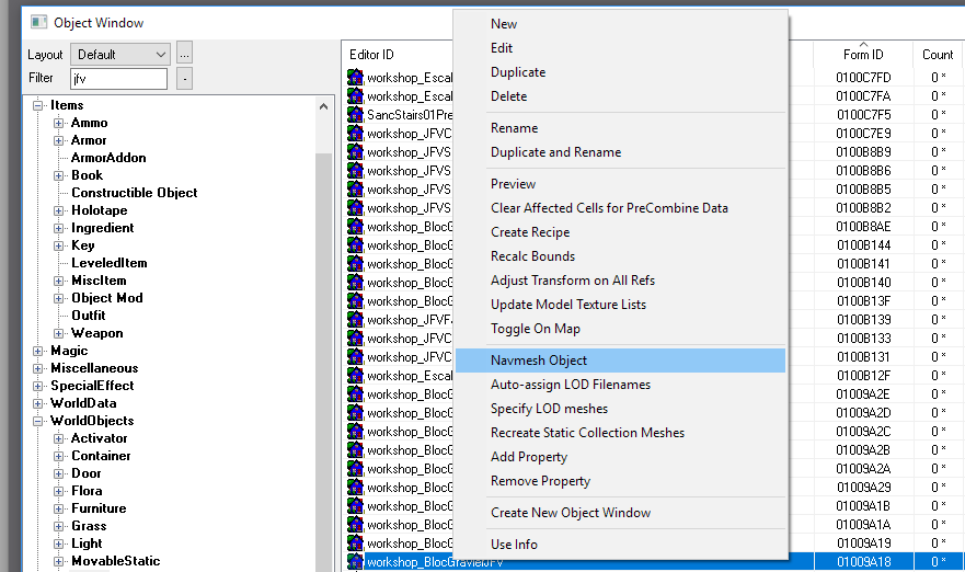 | Dans les premières version du Creation Kit pour Fallout 4, lorsqu'on créait un nouvel objet Statique dans l'éditeur, les données de navigation ou navmesh étaient crées automatiquement |
