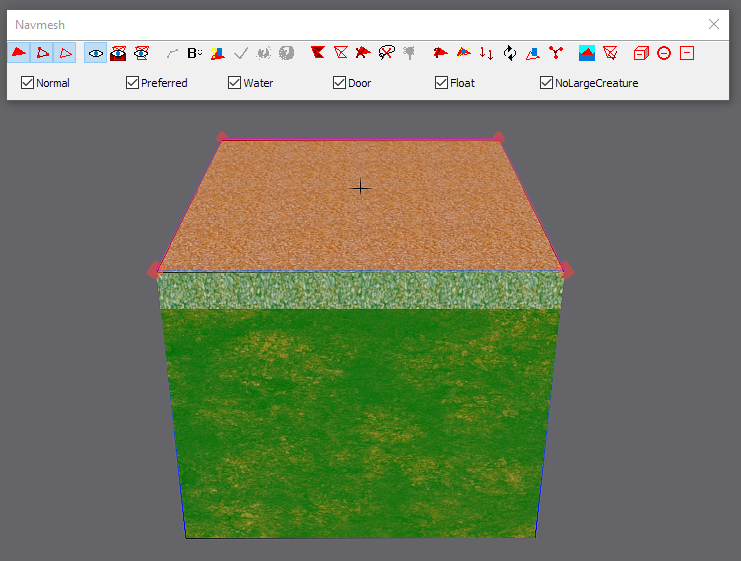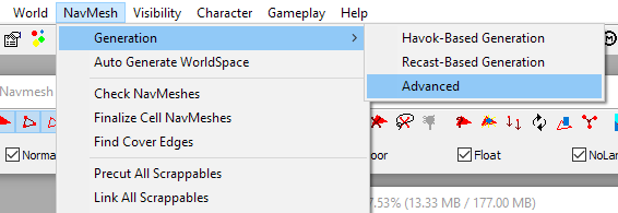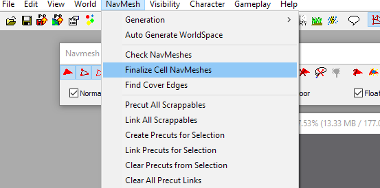 | Lorsqu'on passe dans le mode navmesh, une barre d'outils apparaît, c'est la même qui sert lors de la création de navmesh dans une map pour le jeu. |