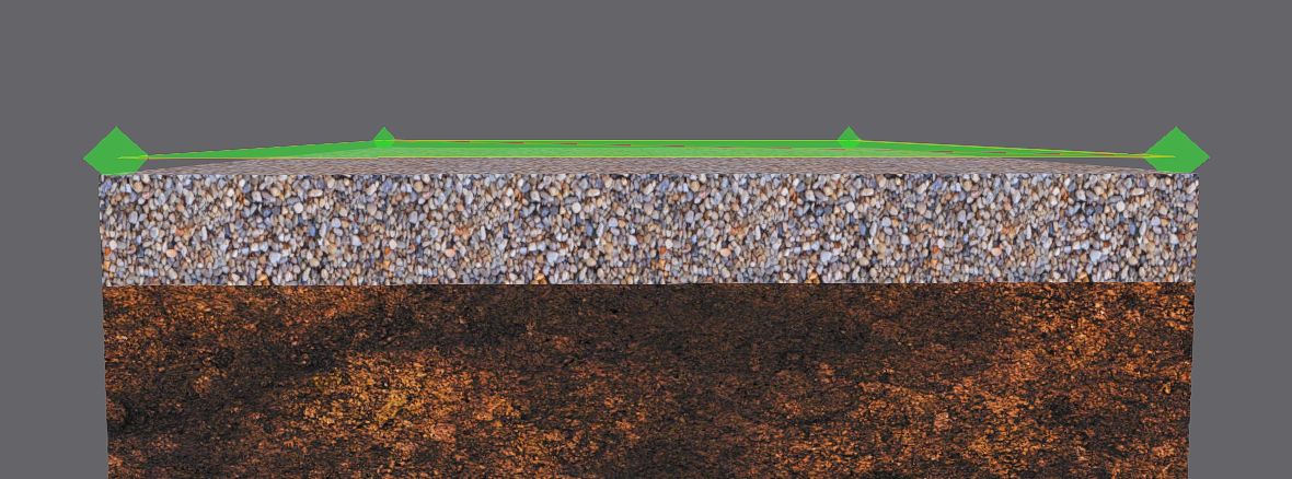 | Pour ajuster la hauteur, il faut sélectionner tous les triangles (clic gauche + tracer cadre de séection), ensuite on presse sur Z pour déplacer les sommets verticalement. |