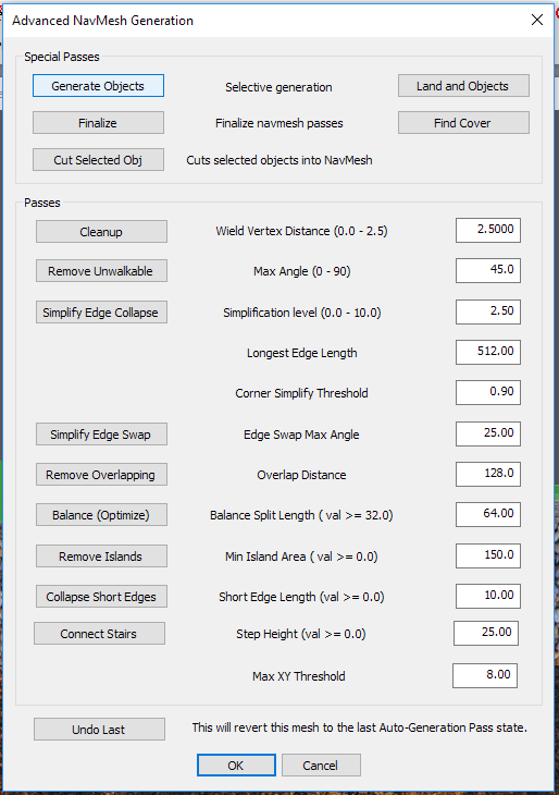 | Une fenêtre de génération de NavMesh avancée va alors apparaître: |