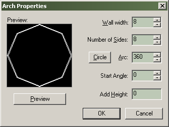 La primitive Arch permet de créer des arches courbes compliquées ou des escaliers circulaires simplement de rapidement. La prévisualisation graphique donne une approxmation du résultat final avec les réglages choisis.