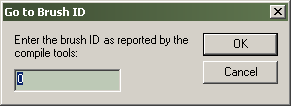 Pour trouver le polyèdre invalide dans votre map, vous ouvrez la boite de dialogue Go To Brush et vous entrez "ici 4" comme numéro du polyèdre,et vous cliquez sur OK. Le polyèdre invalide sera sélectionné et centré dans les vues.