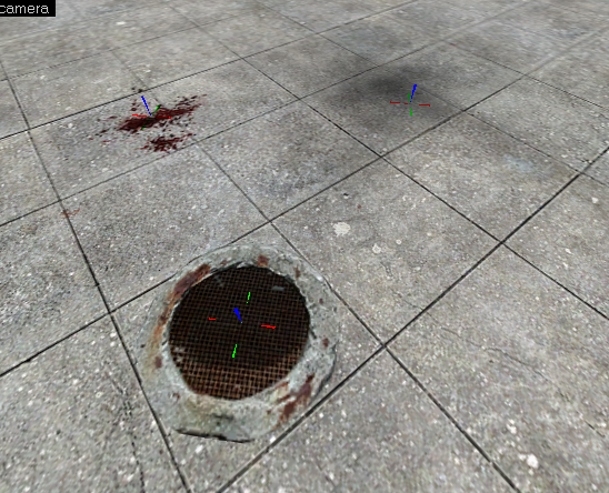 L'outil Apply Decals est utilisé pour placer des decals sur des objets. Un decal est une texture qui peut être placée par-dessus une autre texture, en combinant les deux. Des exemples communs sont des marques d'éraflures ou des trous de balles. Utilisez Apply Decals pour placer un décal dans la vue 3D. Chaque usage d'Apply Decals crée une entité décal spéciale qui projette la texture decal sur les autres surfaces solide avoisinantes. Ces entités decal peuvent être déplacées dans le monde, et vont apparaître sur tout objet qu'elle couvrent.