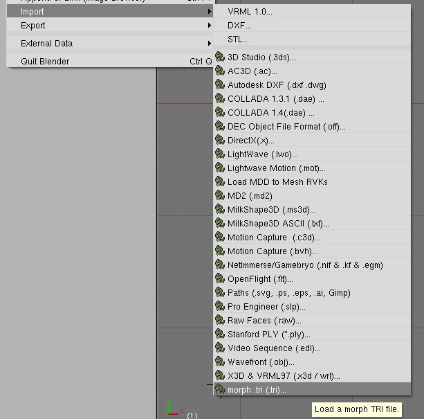 | Heureusement un saint homme japonais je crois (kapaer) a cré un plugin pour Blender 2.49b pour importer et exporter les fichiers TRI |